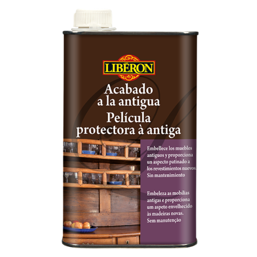 El Acabado a la Antigua, a base de resina natural (goma laca) e ideal para maderas antiguas, embellece la superficie con un acabado cálido y refinado.