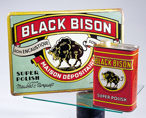 En los años cincuenta, todo aquello que provenía de Estados Unidos era sinónimo de progreso y modernidad. El bisonte, animal emblemático que simboliza resistencia y robustez. El adjetivo «negro» recuerda el color de la pasta disponible en aquel entonces en betún y encáustico.